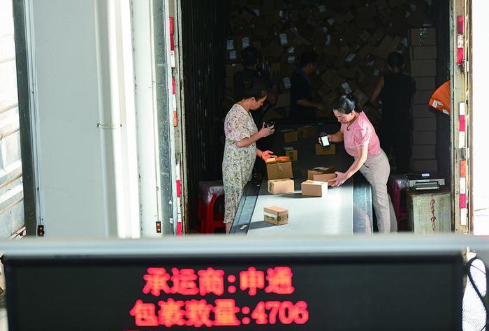 當(dāng)日,該物流園內(nèi),自動化傳輸帶將一件件藥品快遞運(yùn)送至貨車車廂。